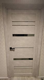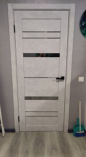 Дверь ПО Cezar 2 Бетон лайт стекло зеркало графит из Экошпона COVERFLEX (Двери Нева) в с установкой и доставкой