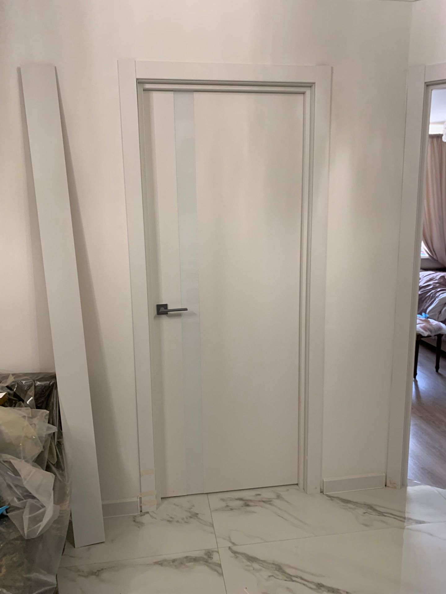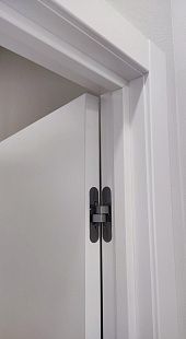 Кроме того производится врезка под скрытые петли. Такая опция помогает избежать лишних пыльных работ на адресе и сокращает время работы на монтаже. По возможности врезки в конкретную модель уточняйте у менеджеров.