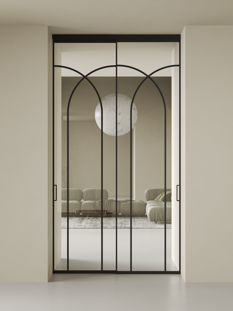 Купить дверь Diva 1 черная стекло осветленное с аркой 1 в с установкой и доставкой